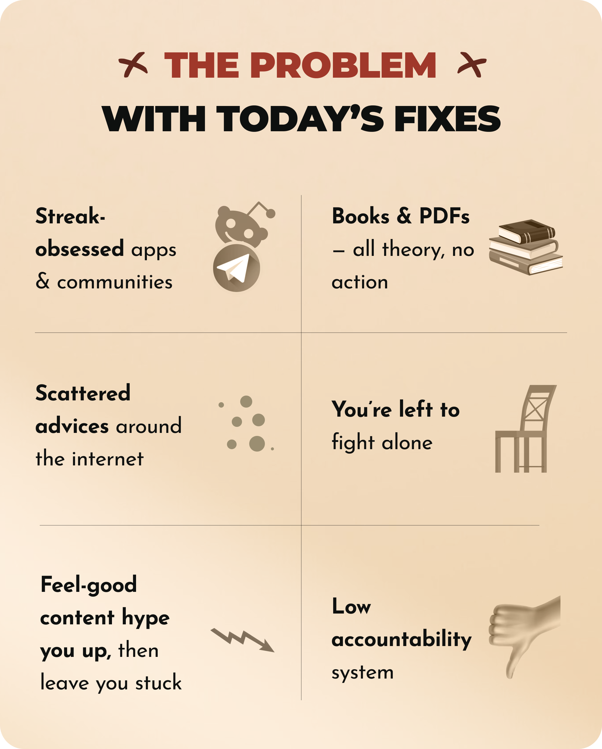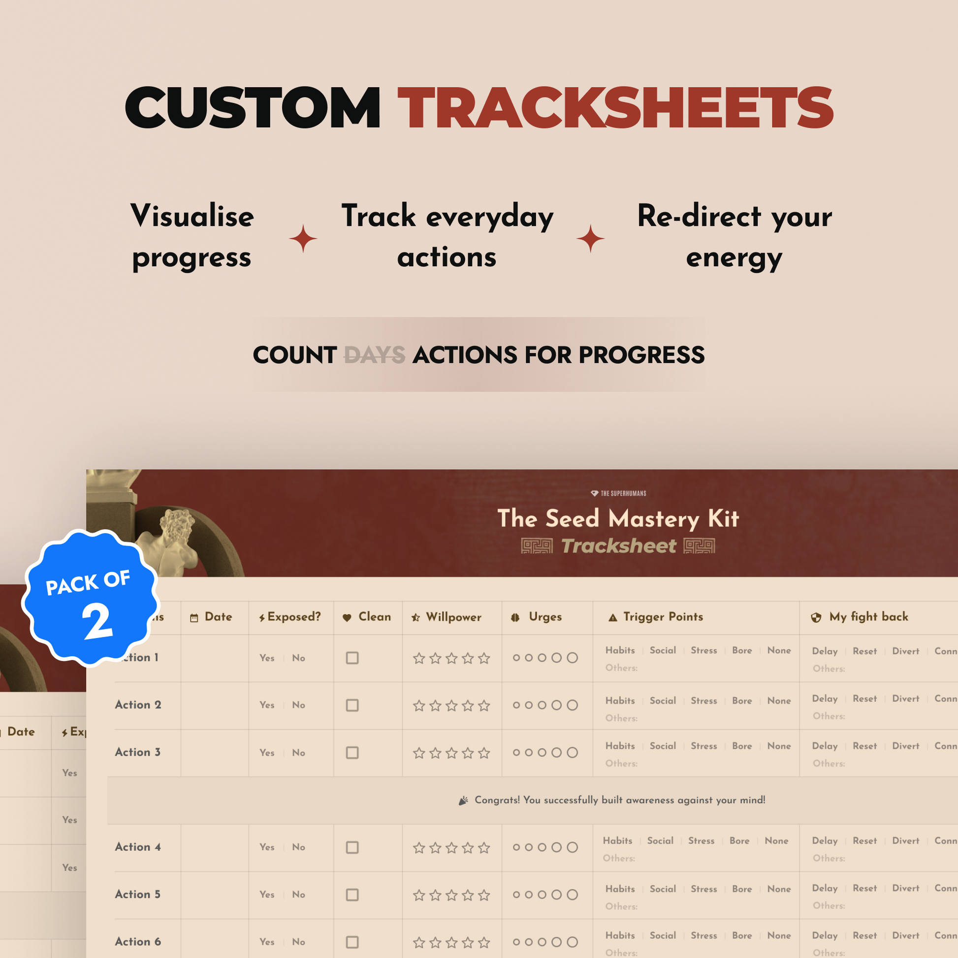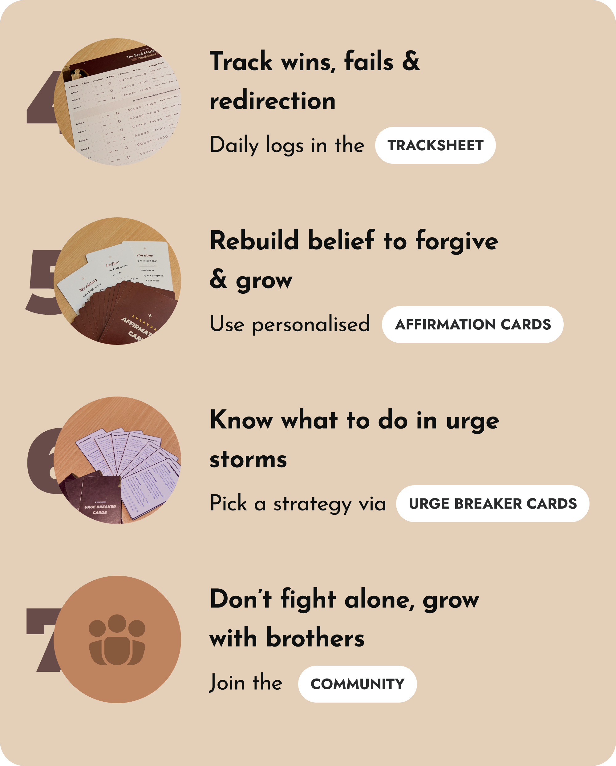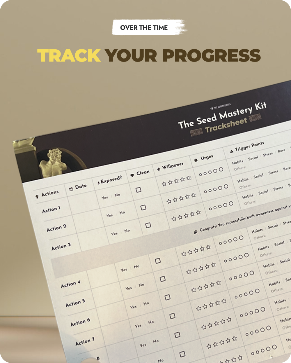 Most solutions only give motivation for a few days. The Seed Mastery Kit gives you structured strategies, urge-breaker tools, and trackable progress sheets so you can build real habits and long-term discipline.