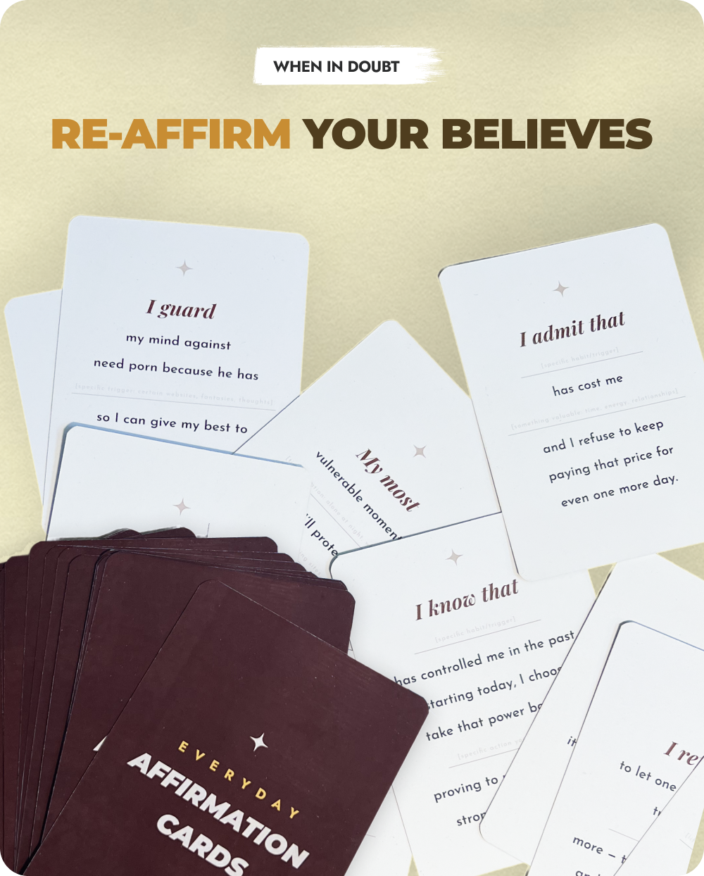 - Every time you pick a card, you’re rewiring your self-talk from shame and guilt → to strength and discipline.